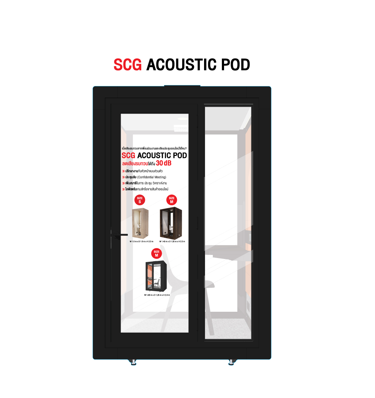 - ห้องเก็บเสียงส่วนตัว หรือ ตู้ Acoustic Pod ทุกห้อง สามารถสร้างเฉพาะได้ โดยออกแบบให้เหมาะกับพื้นที่การใช้งานของลูกค้าแต่ละท่าน แต่ละบริษัท เพื่อให้ตอบโจทย์ความต้องการให้ได้มากที่สุด