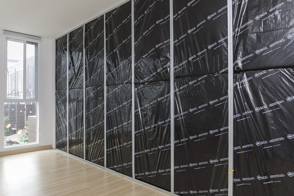 ทั้งนี้ แนวทางในการแก้ไขปัญหา สามารถทำได้โดยการเสริมระบบผนังกันเสียง เช่น ติดตั้งแผ่นกันเสียง SCG รุ่น Cylence Zoundblock ที่ผนัง ให้ผนังหนาขึ้น และกันเสียงดังจากภายนอกทะลุเข้ามาภายในได้ดีขึ้น ในส่วนของประตูหน้าต่าง หากมีงบประมาณเพียงพอ ก็แนะนำเปลี่ยนใช้เป็นประตูกันเสียงและหน้าต่างกันเสียงไปเลย จะกันเสียงดังได้ดีที่สุด แต่หากต้องการประหยัดงบประมาณ ก็สามารถเลือกใช้เป็นเทปกันเสียง Noise Zeal ติดบริเวณช่องวงกบประตูหน้าต่างเพิ่มเข้าไป ก็จะช่วยกันเสียงจากภายนอกไม่ให้เล็ดลอดเข้ามาภายในห้องได้ดียิ่งขึ้น